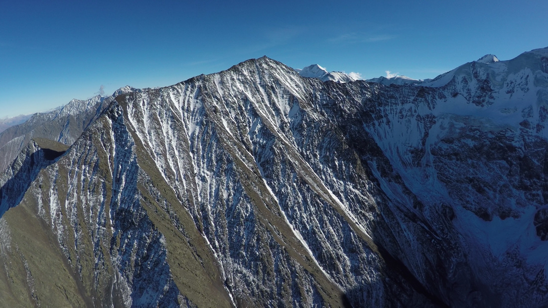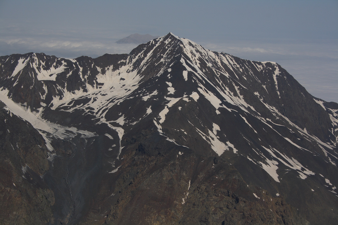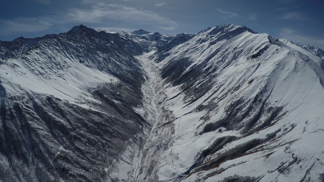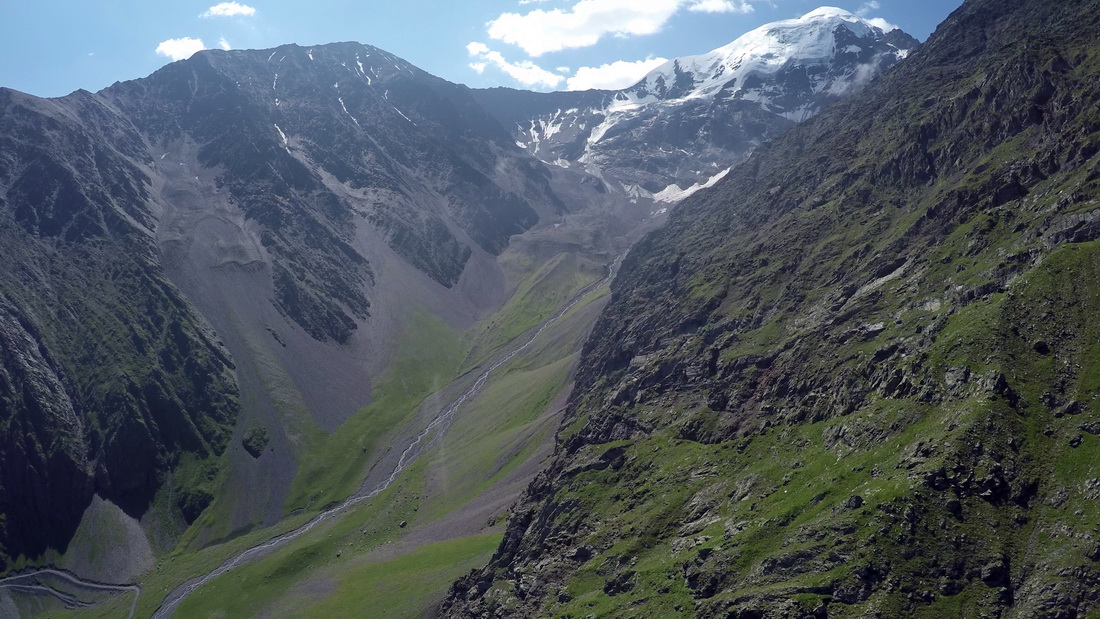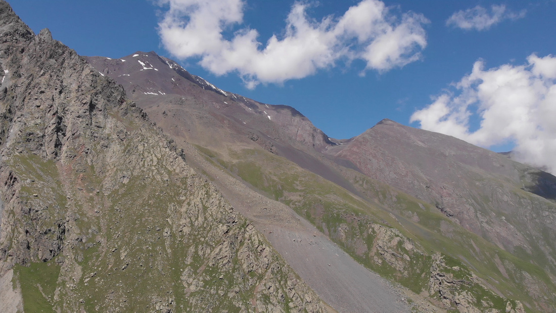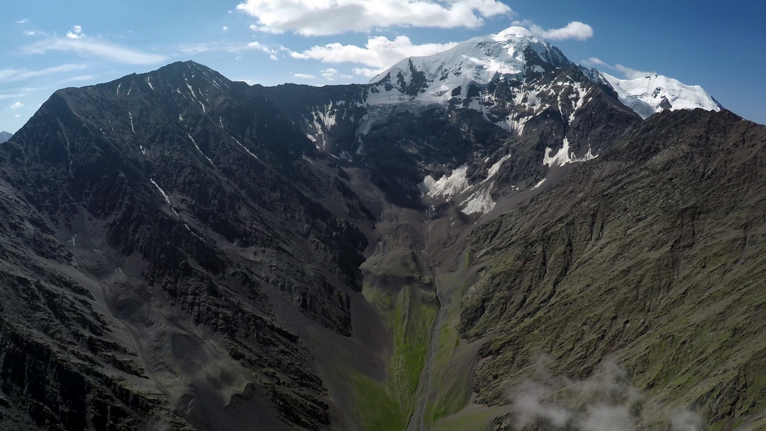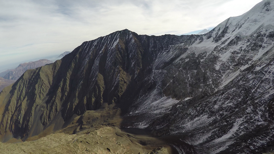 Западный склон пика Геодезиста (слева) из ущелья Цата