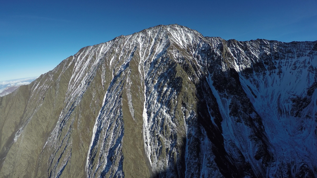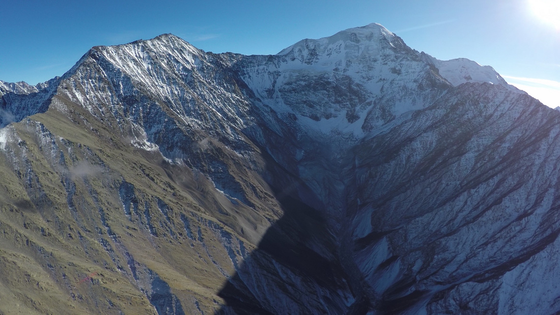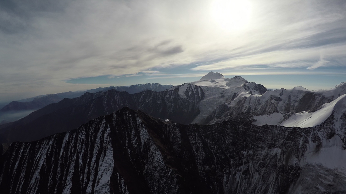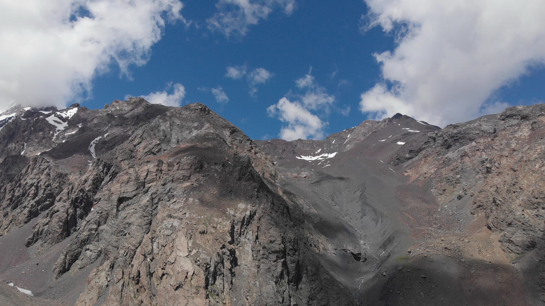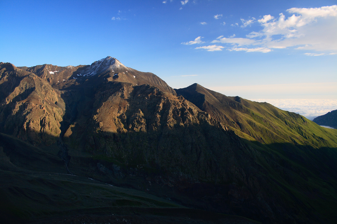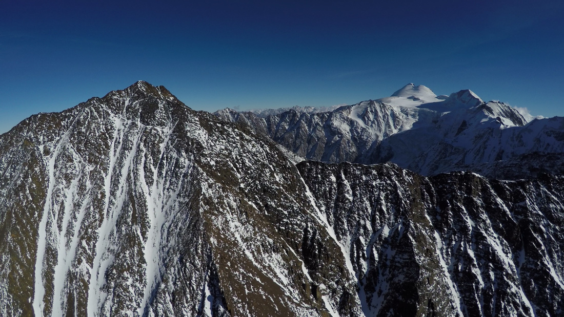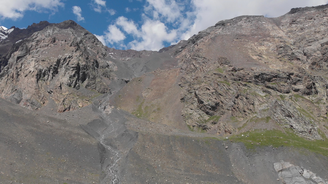 Западный склон пика Геодезиста (слева) из ущелья Цата