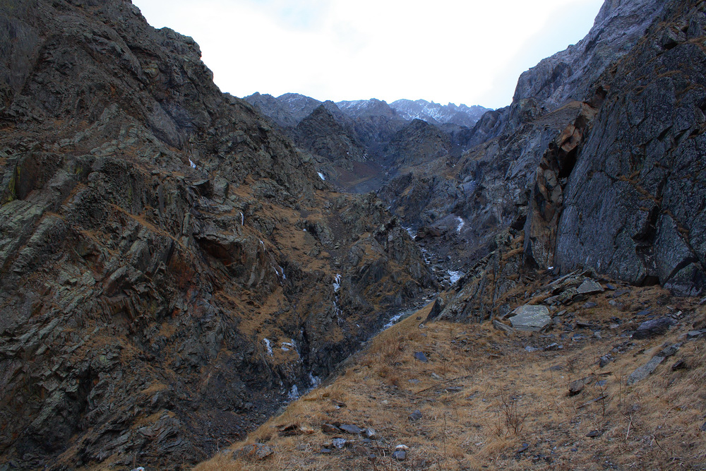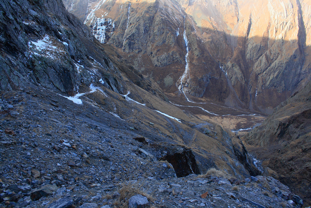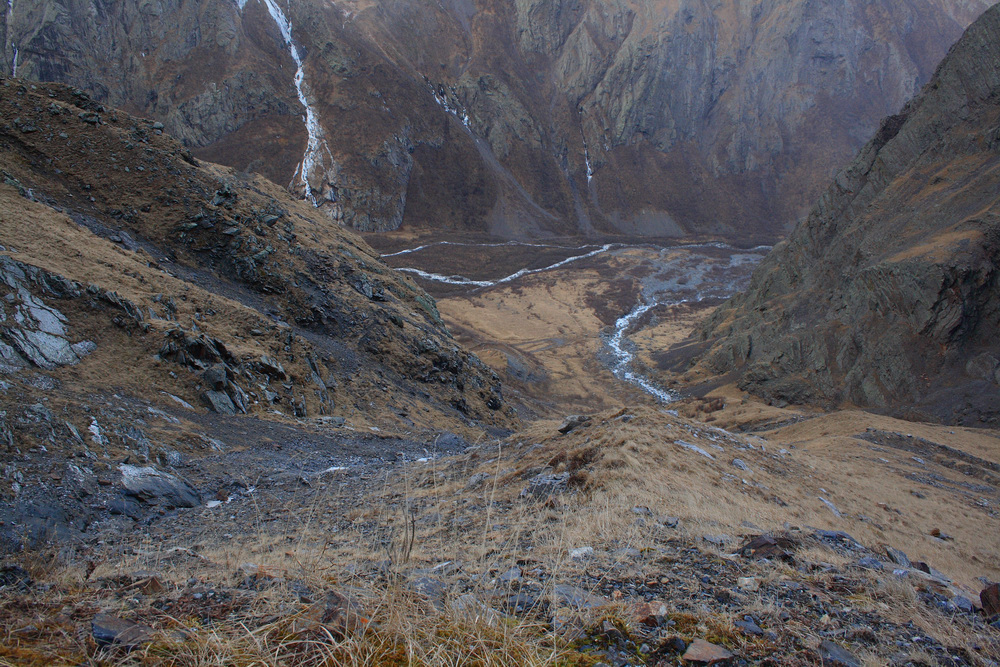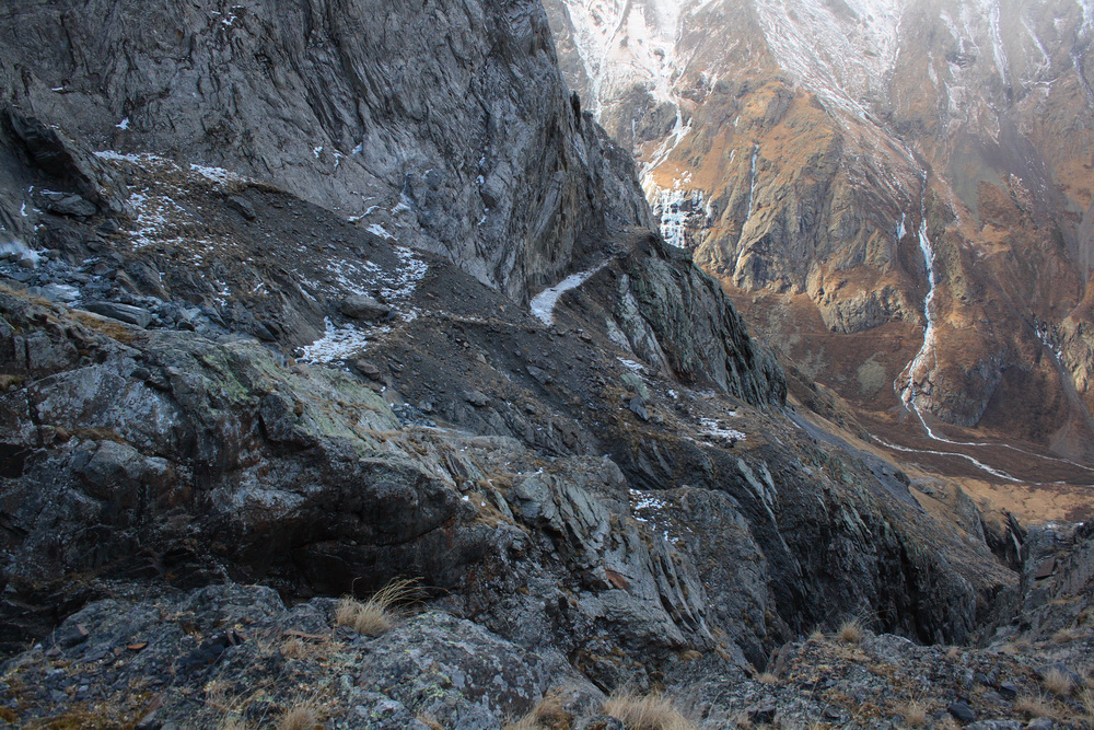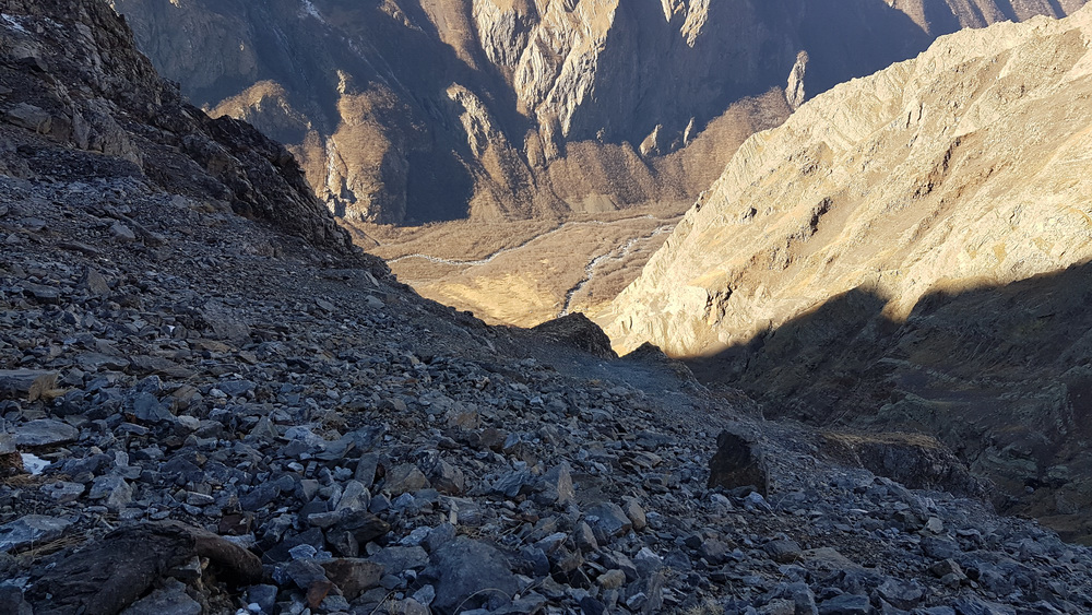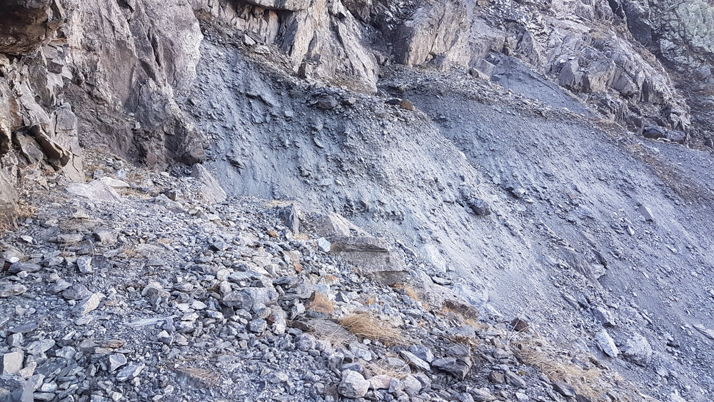 Вид вниз, в сторону дороги, от начала осыпного кулуара