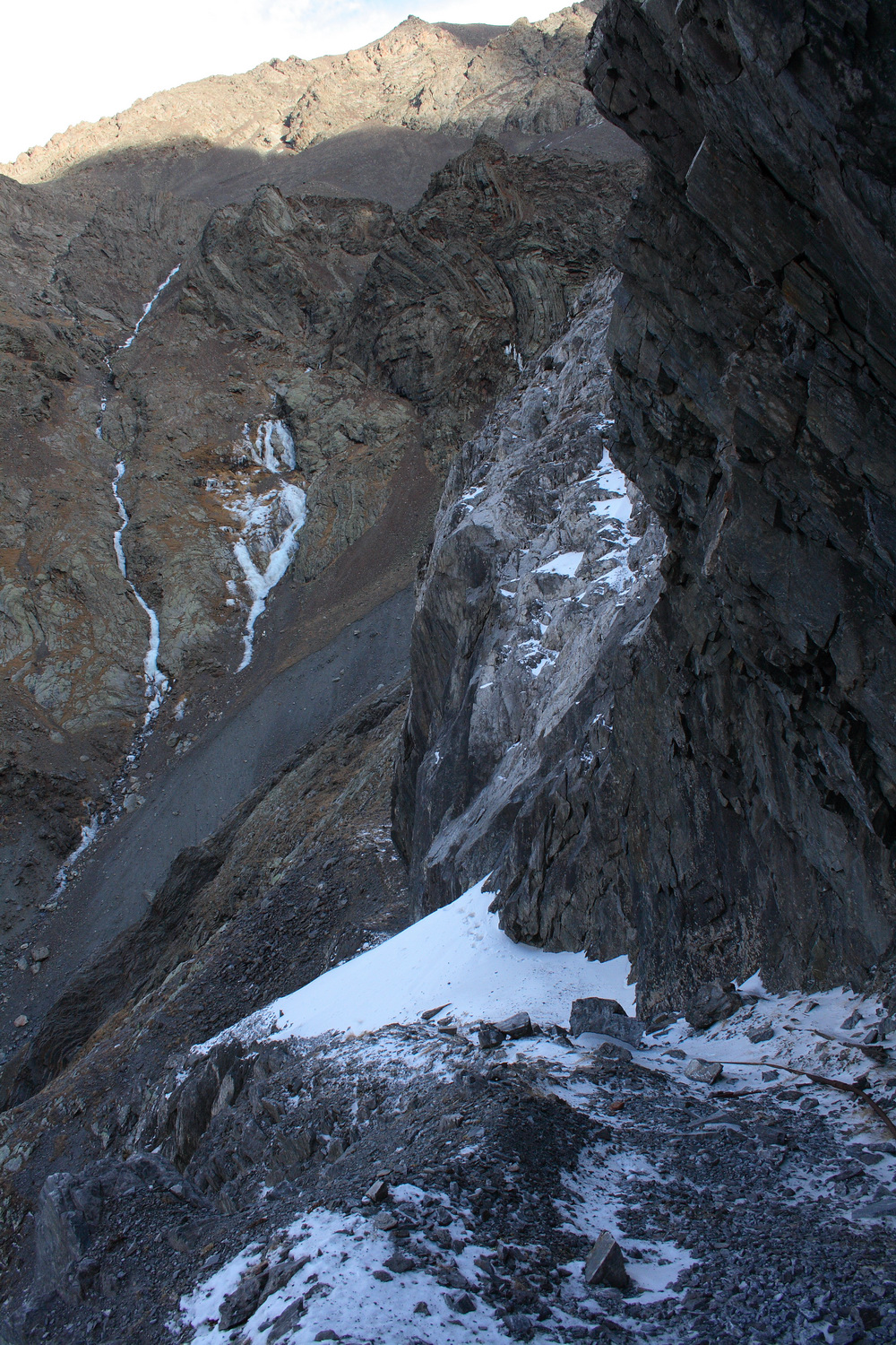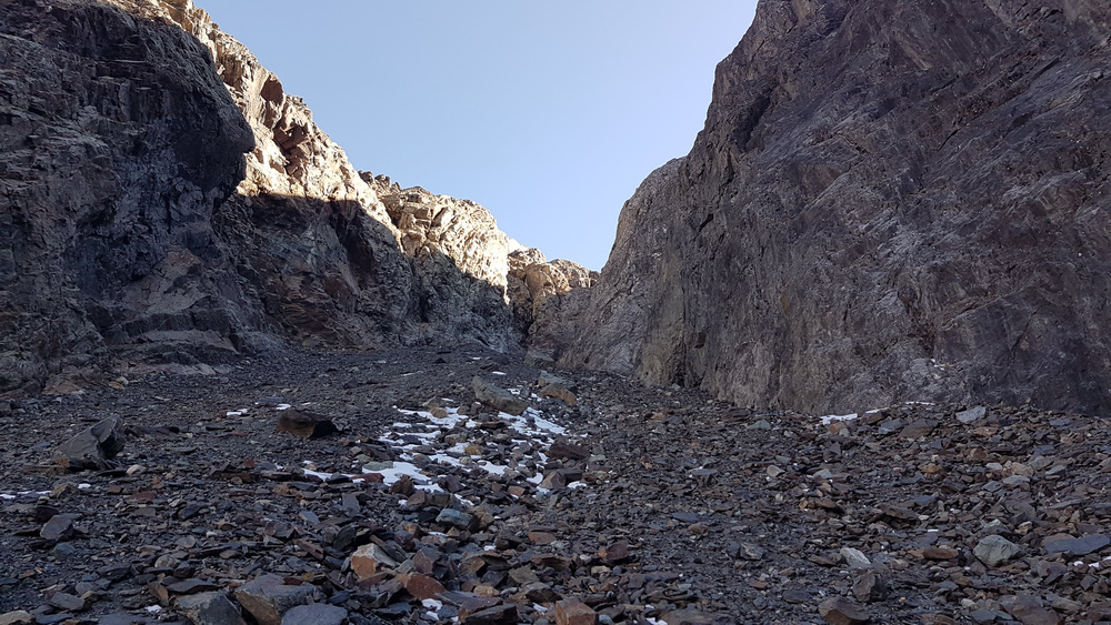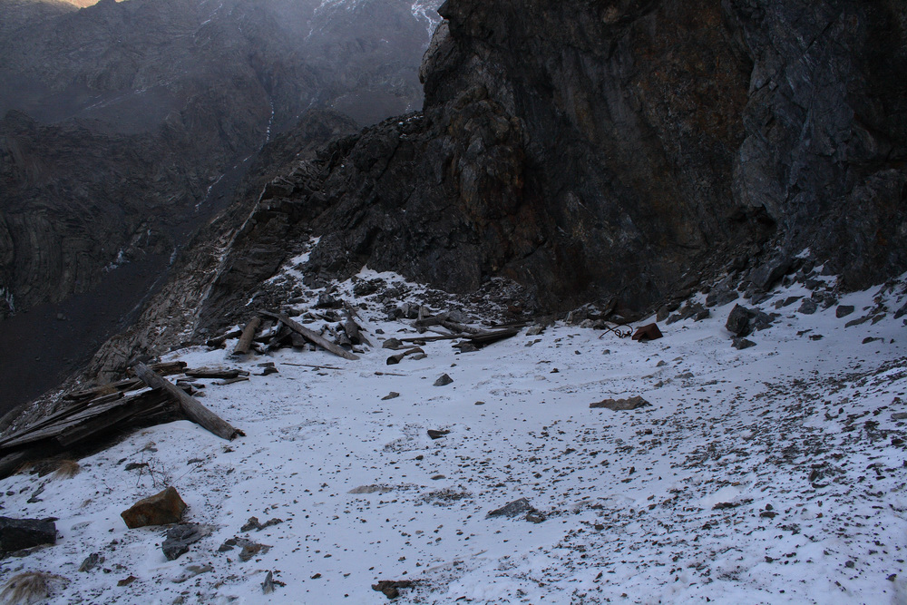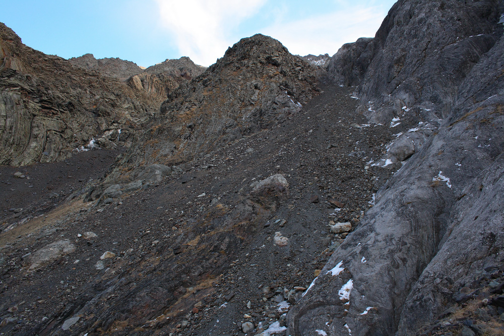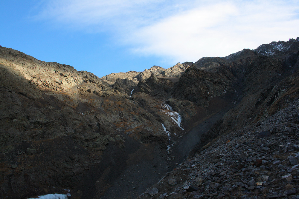 Осыпной кулуар выводящий к "бараньим лбам" под ледником