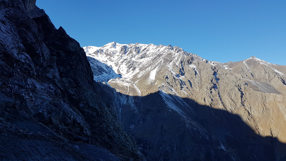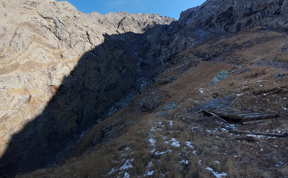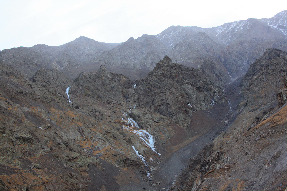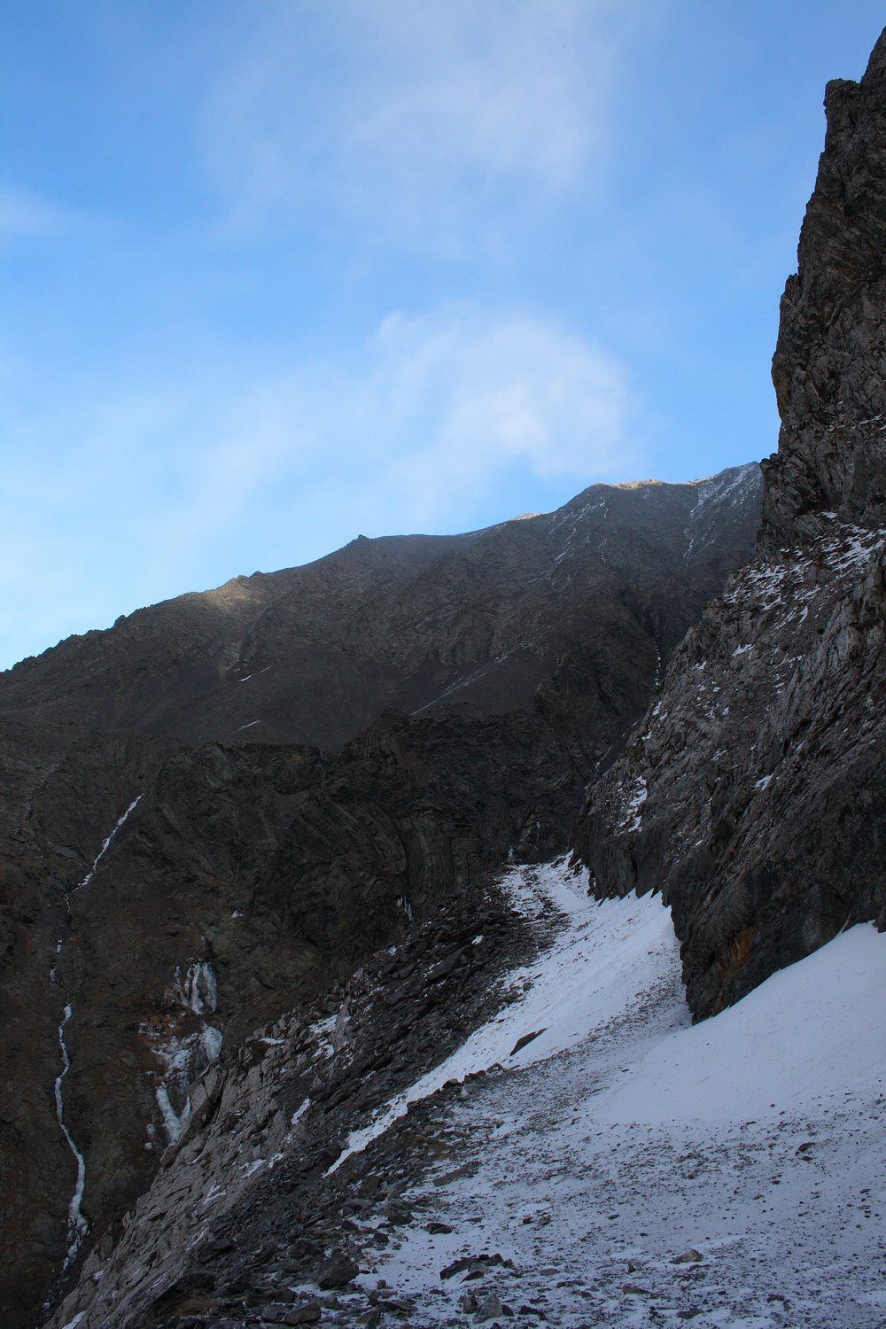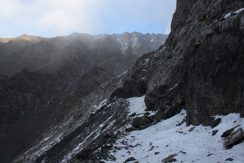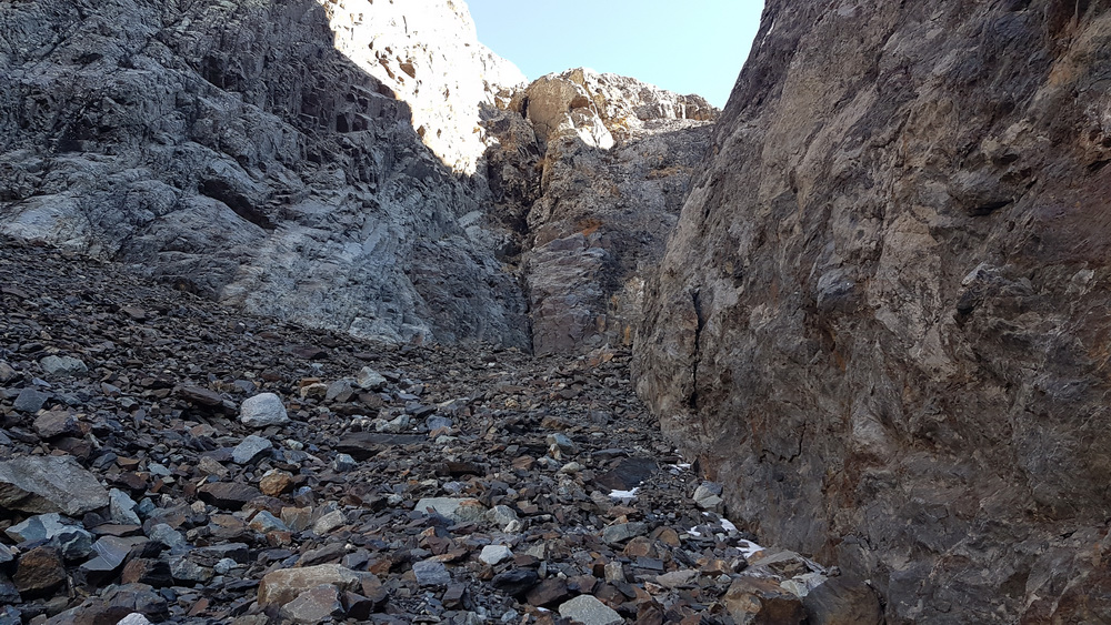 Осыпной кулуар выводящий к "бараньим лбам" под ледником
