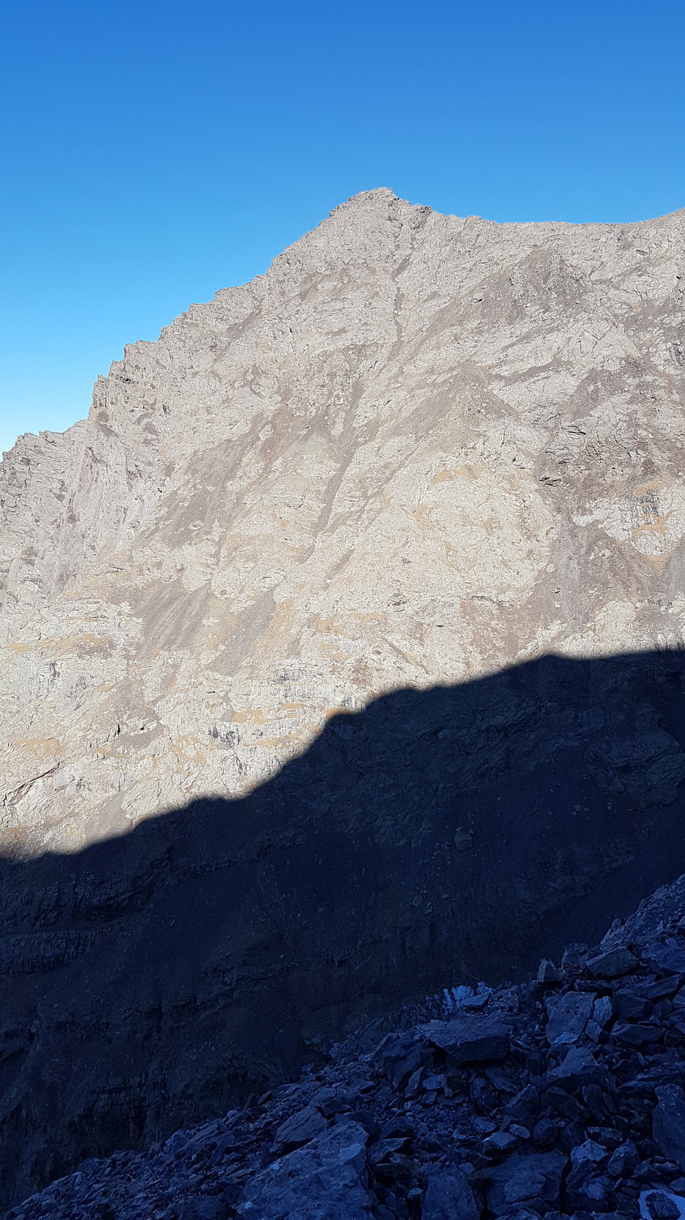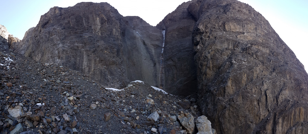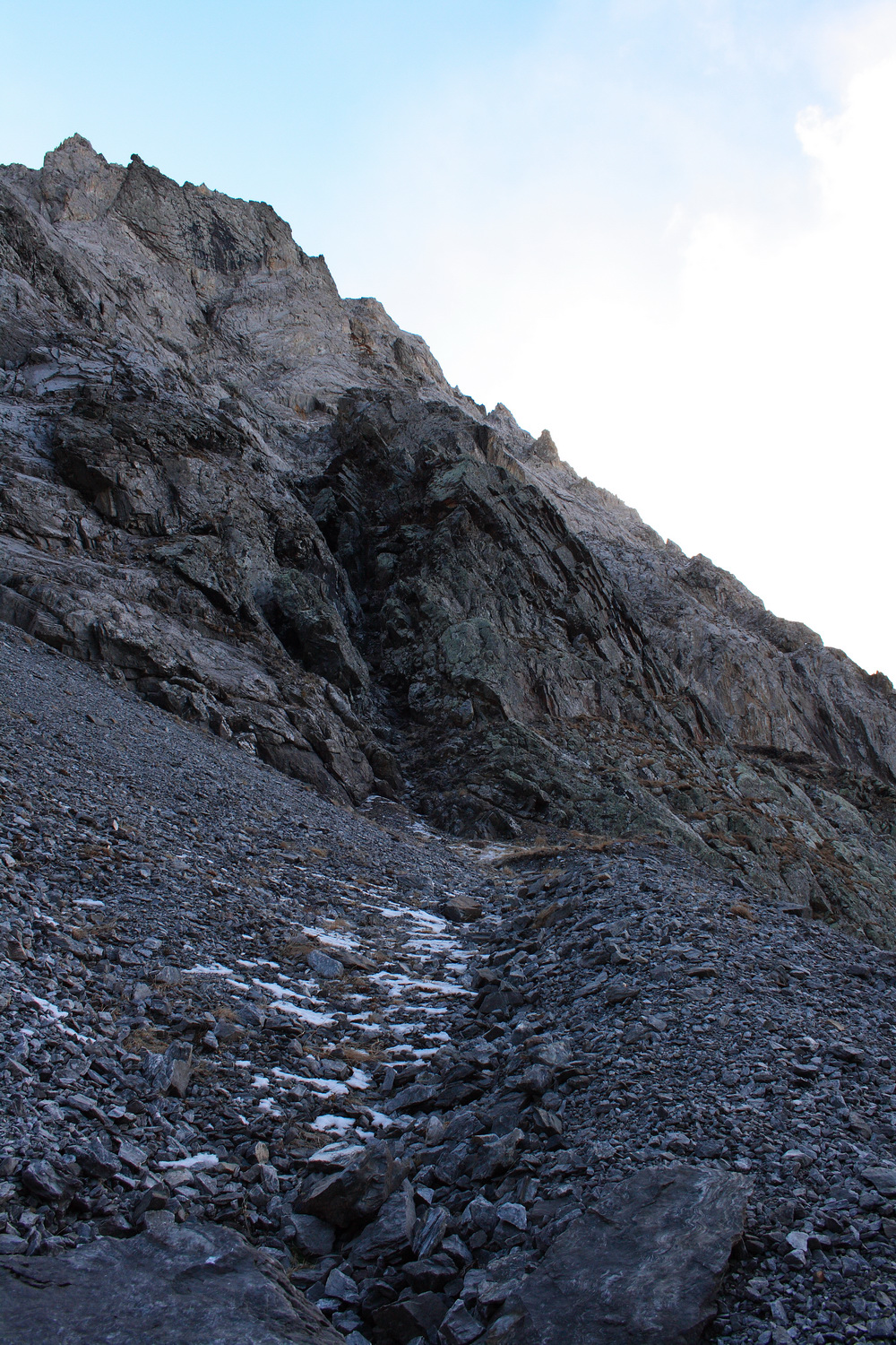 Осыпной кулуар в нижней части, сюда идти не надо :)
