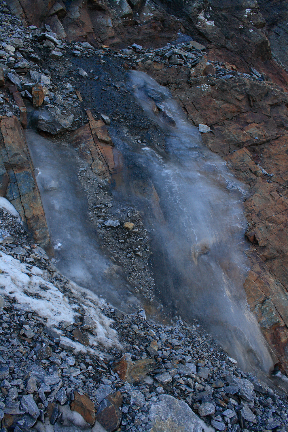 Летом в отполированных скальных кулуарах текут бурные потоки