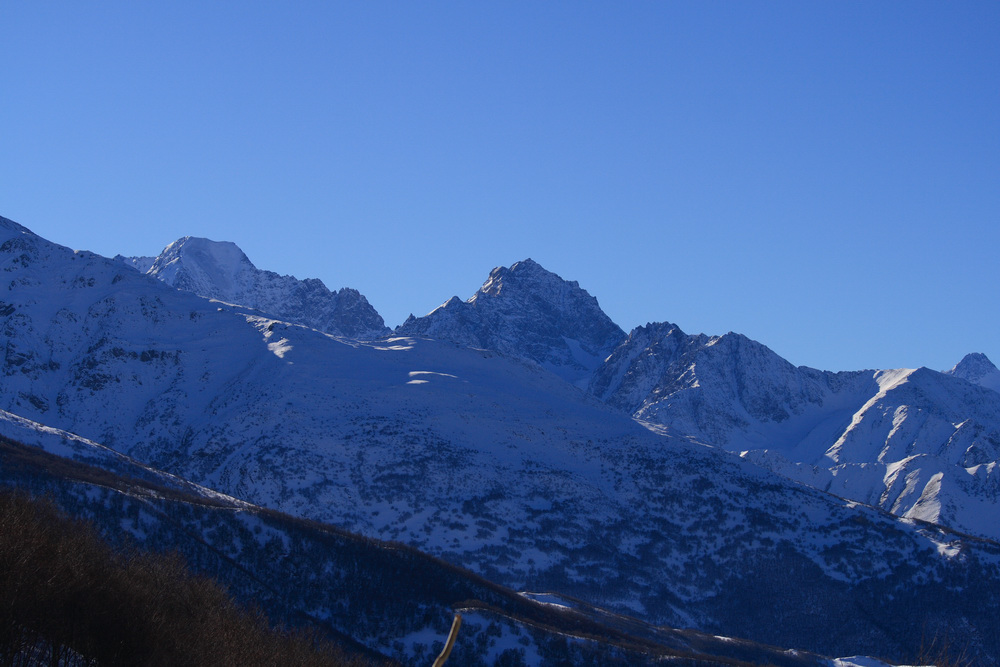 Скалистый хребет: г.Тбаухох (3008 м.), г.Чиджитыхох (2820 м.), г.Хиах (2770 м.), г.Столовая (3000 м.)