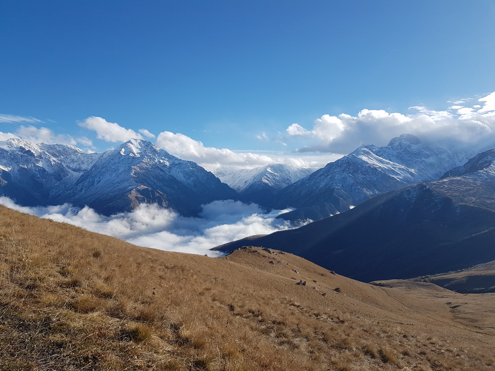 Вид на юго-восток г.Сырхубарзонд (4150 м.), г.Закахох (3709 м.), г.Архон (4158 м.)