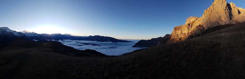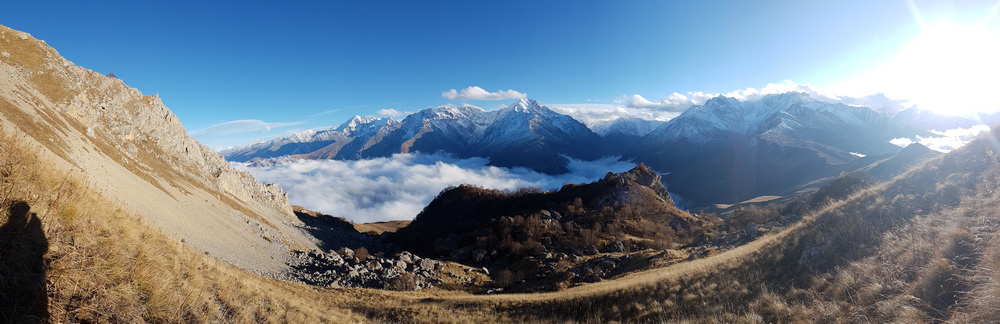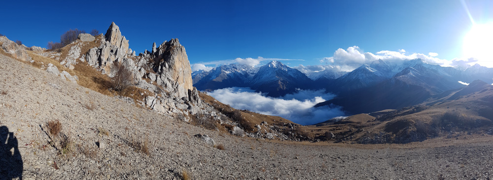 Панорама от массива г.Кайджана (3914 м.) до г.Сырхубарзонд