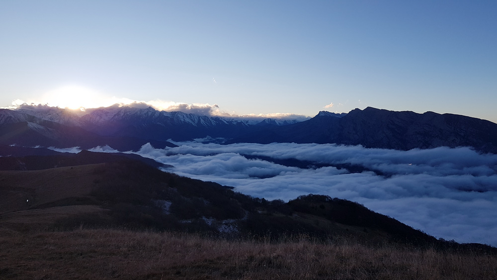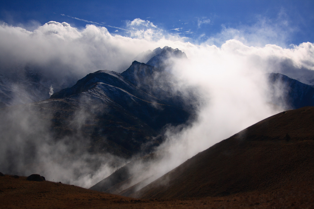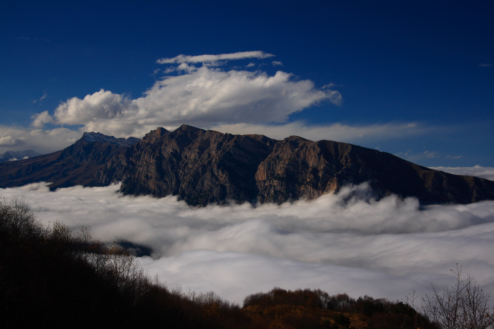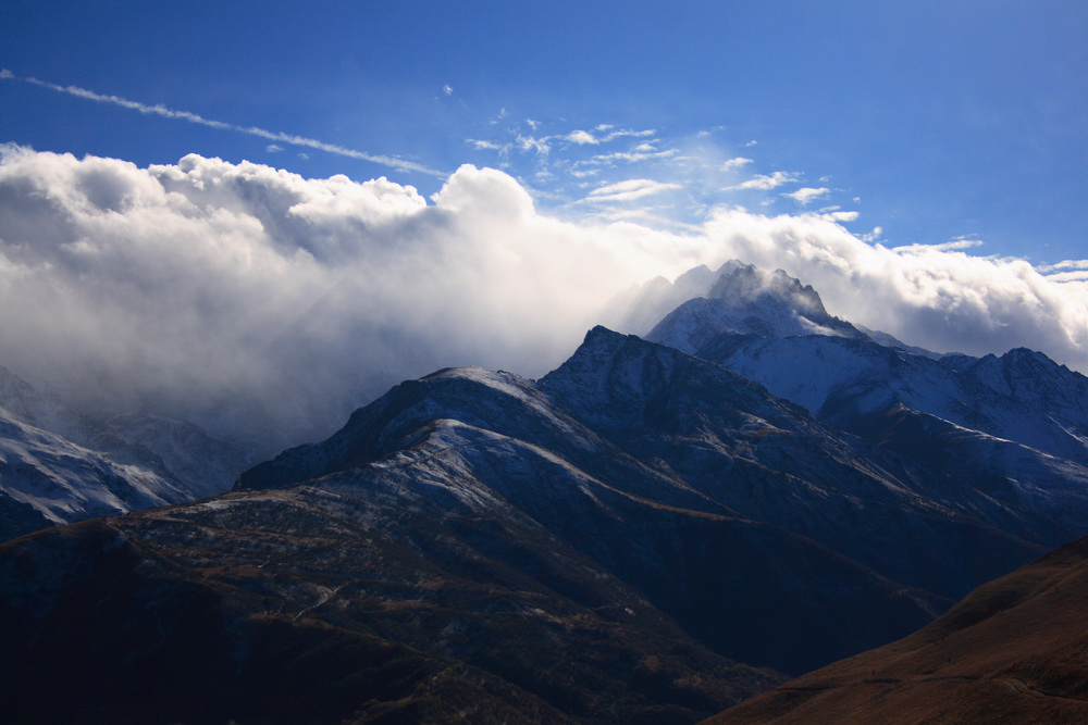г.Кай (3065 м.), за ней г.Колота (4152 м.)