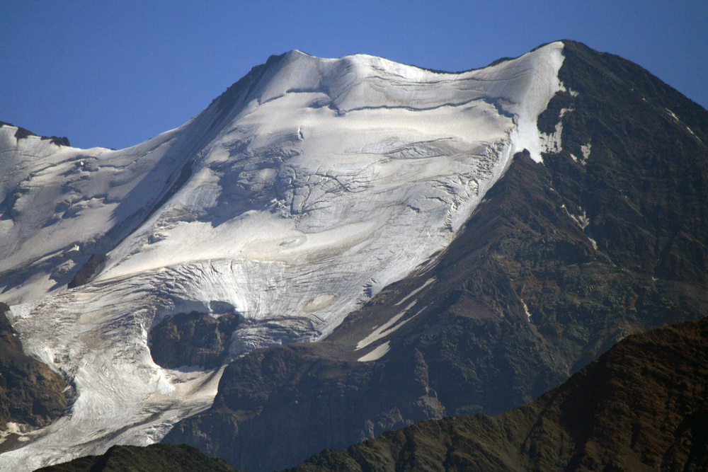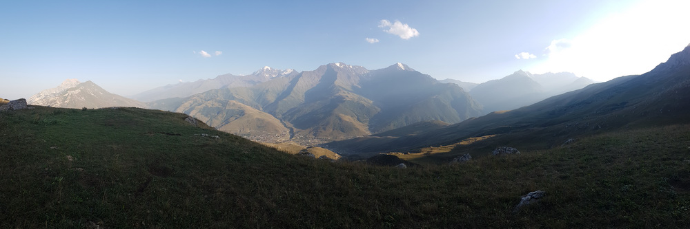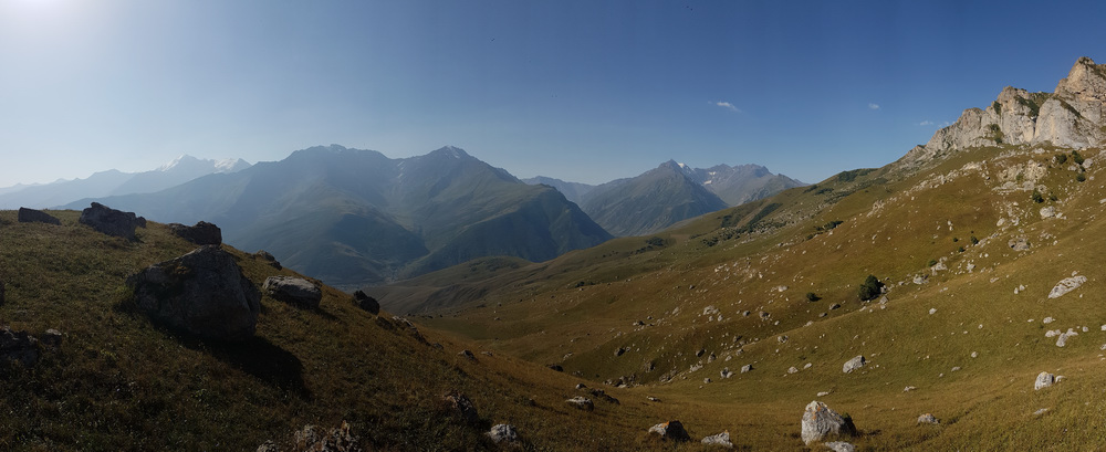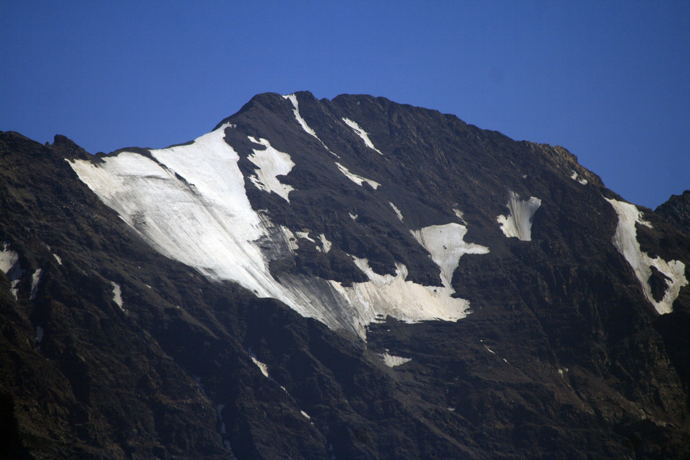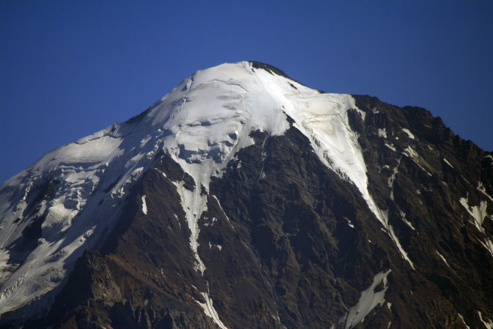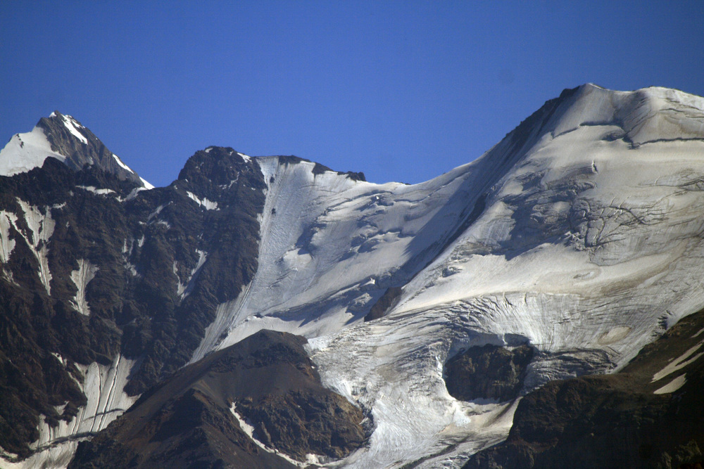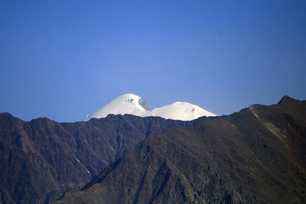 Вершина г.Джимарайхох (4788 м.) (слева), пик 4311, перевал Зайгалан, г.Дружба